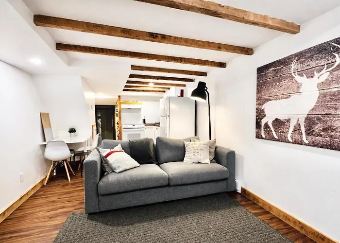 The 56 m² Loft The Montcalm -2 Min Falls - Free Parking Boischatel apartment is located 12 minutes' walk from Montmorency Falls Suspension Bridge and 3.4 km from the Falls of the White Lady. Guests can use Wi-Fi for either business or leisure reasons.